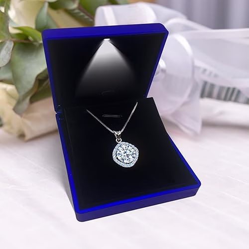 Moissanite is a gem closest to natural diamonds with heavy 18k white gold plating to last lifetime. Hypoallergenic and nickel and lead free, unlike cheaper metals, sterling silver moissanite necklace will not irritate your skin, it will not cause redness and swelling to your neck and will ensure your comfortable use.