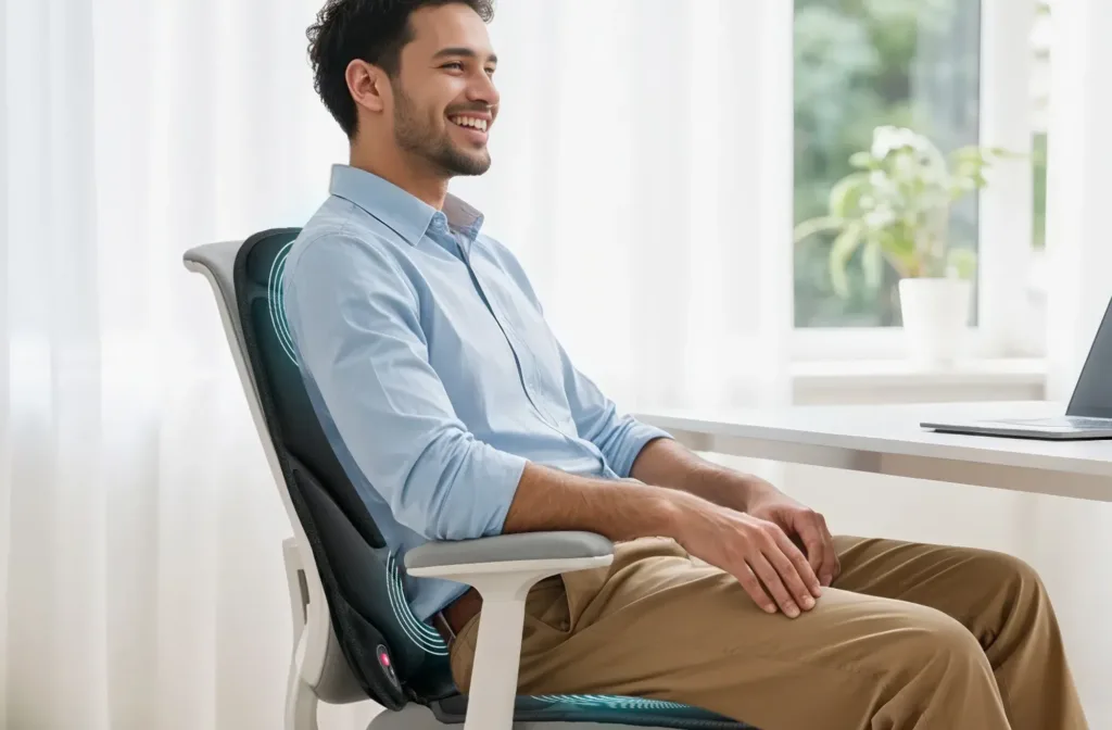 The back massager cushion is designed with one upgrade heating pads in the back providing gentle warmth for your full back. It provides you a nice seat warmer in cold weather. Featuring 2 adjustable levels, the function can be used independently.