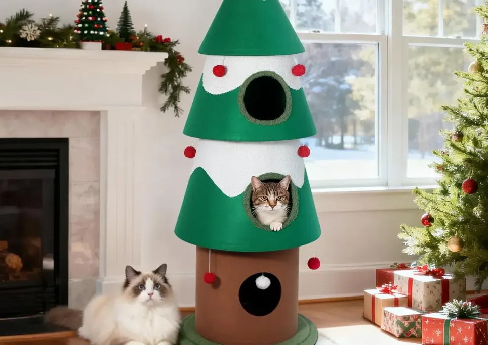 This holiday-themed cat tree is perfect for giving your kitty a cozy place to climb, lounge, and play while adding a fun seasonal touch to your home décor.