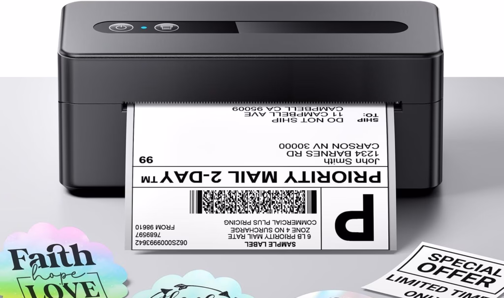It’s a no-ink thermal printer, making it easy and affordable to print shipping labels without dealing with cartridges.